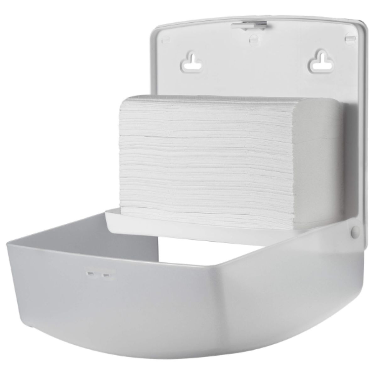 Диспенсер для листовых бумажных полотенец Z- и W-сложения. Эргономика устройства обеспечивает визуальный контроль расхода полотенец, вместимость до 200 листов и фронтальную загрузку. Дизайн конструкции диспенсера позволяет разместить его на стене, а также минимизирует воздействие внешней среды на расходные материалы. Ключ входит в комплект.