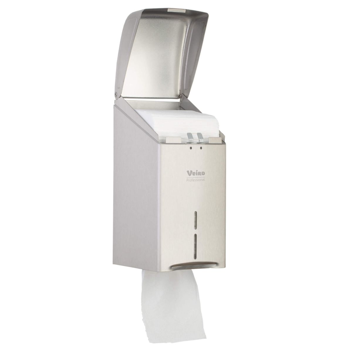 Универсальный диспенсер для листовой туалетной бумаги подходит для общественных туалетных комнат и для туалетных комнат номерного фонда. Быстрая и легкая система загрузки расходных материалов: до 2 пачек туалетной бумаги (до 500 листов). Диспенсеры разработаны с учетом основных требований мест общественной гигиены: эргономичность и надёжность, контроль расходных материалов, скорость и удобство обслуживания. Прочный полностью металлический корпус (сталь 0.8 мм) и специальное покрытие против отпечатков пальцев обеспечивают премиальный внешний вид и сокращают расходы на обслуживание и внеплановую замену. Строгие классические формы и благородный бронзовый отлив придают солидность как самому диспенсеру, так и облику туалетной комнаты.