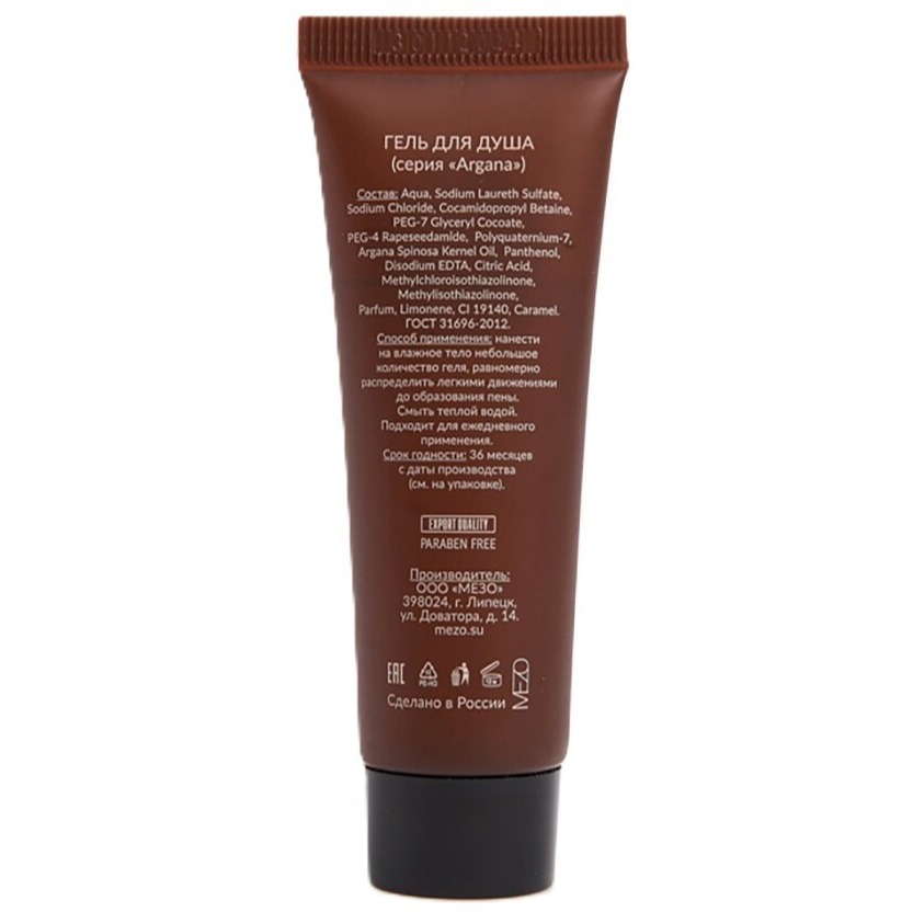 Гель для душа с содержанием арганового масла. Имеет приятную консистенцию, благородный цвет и мягкий аромат, который по достоинству оценят ваши гости. Масло арганы отлично смягчает кожу, обладает защитными и сильными увлажняющими свойствами. В составе геля имеются как синтетические, так и натуральные очищающие и пенообразующие вещества. Рекомендуем использовать этот гель для душа в комплексе с лосьоном из этой же серии, который помимо арганового масла содержит и ценное масло ши. Соответствует ГОСТ 31696-2012. Не содержит парабенов. Дерматологически протестировано.