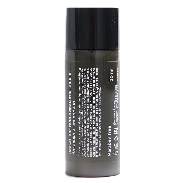 Лосьон для тела с бодрящим и в меру терпким ароматом представляет собой инновационное средство для ухода за кожей после водных процедур или массажа. Основой его ароматического профиля является тщательно подобранный микс из цитрусовых нот лайма и мандарина, а также освежающих акцентов базилика, что обеспечивает комплексное ощущение свежести и прилива энергии. Данный лосьон демонстрирует высокую эффективность в увлажнении и питании кожных покровов, способствуя восстановлению гидролипидного баланса и улучшению текстуры кожи. Регулярное использование продукта способствует поддержанию оптимального уровня гидратации, делая кожу мягкой, гладкой и эластичной. Обеспечивает не только эстетическое, но и функциональное улучшение состояния кожи, что делает его подходящим для ежедневного применения в рамках комплексного ухода за кожей. Не содержит парабенов. Дерматологически протестировано. Соответствует требованиям ГОСТ 31460-2012.