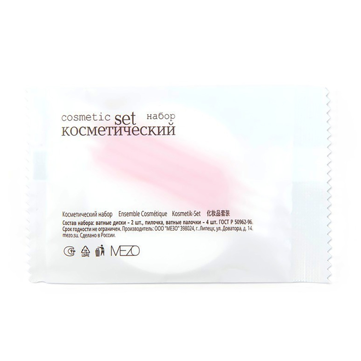 Набор состоит из 4 ватных палочек и 2 ватных дисков.