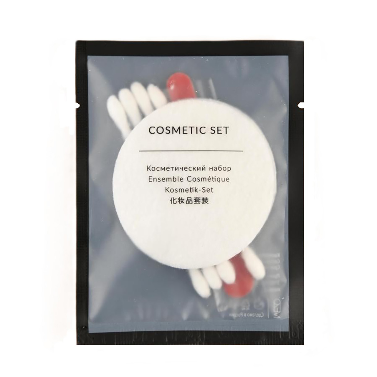 Состоит из 2 ватных дисков, 4 ватных палочек и мини-пилочки для ногтей.